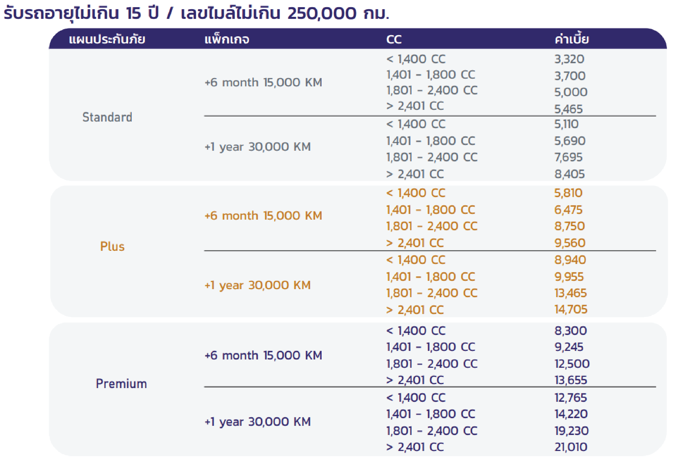 กับโปรแกรมบริการขยายระยะเวลาประกัน ประหยัดทั้งรถ ตัวคุณ เงิน และเวลา ในค่าเบี้ยเริ่มต้นเพียง 2,555 บาท